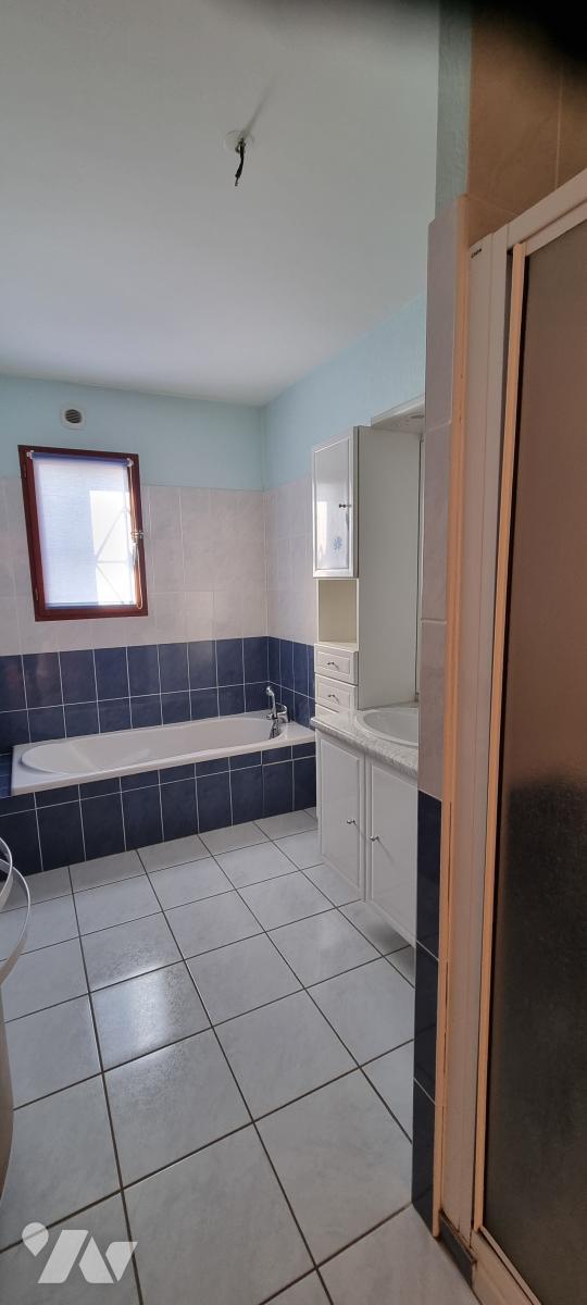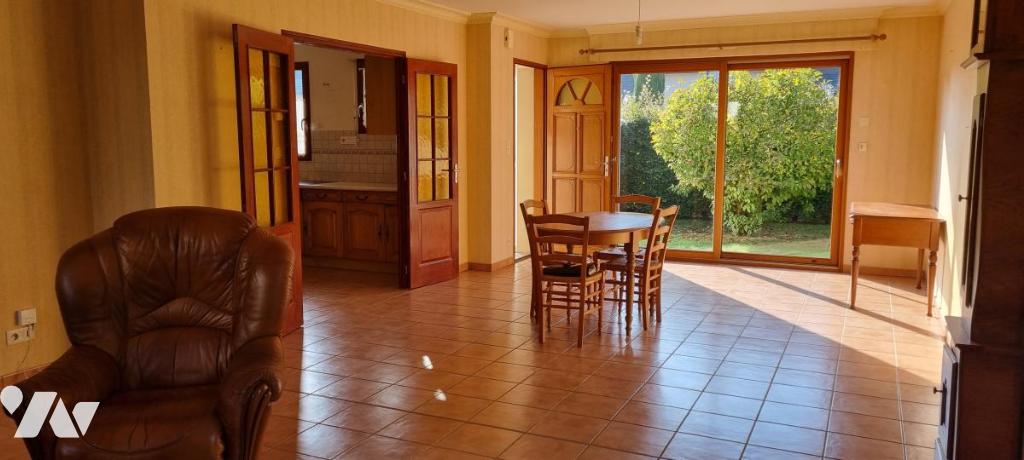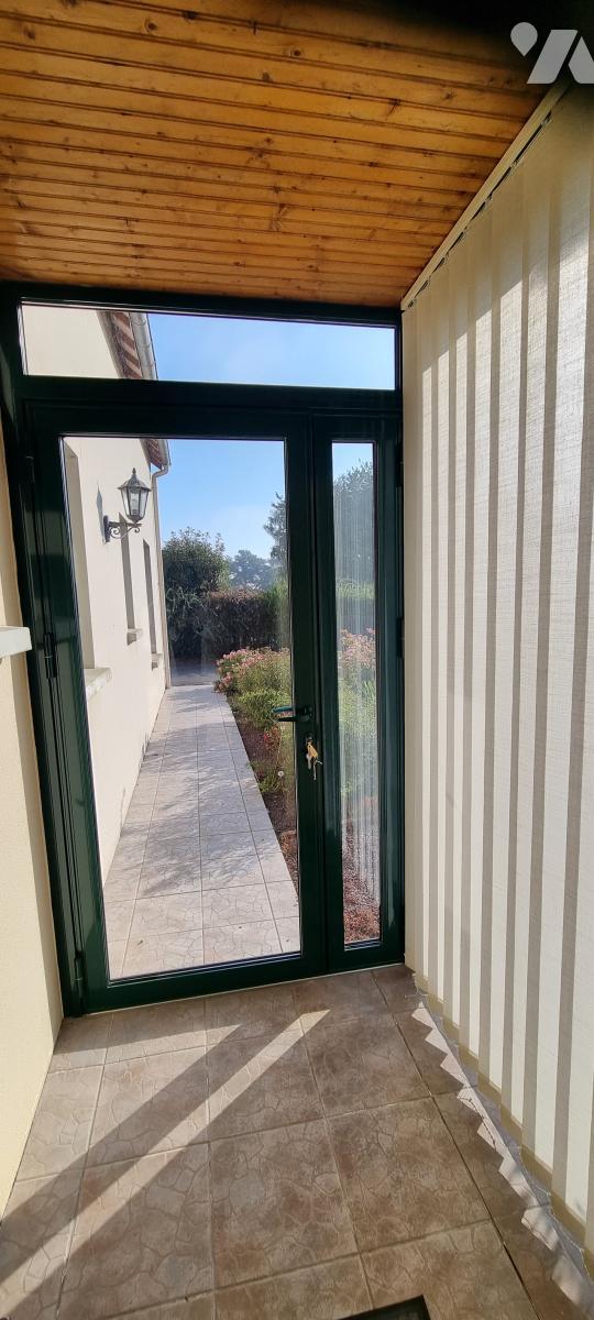DOMALAIN - Bourg : Pavillon de 2002, SH : 129,46m², R.D.C., sas d'entrée, séjour-salon, cuisine aménagée, sdb, 2 chambres, W.C., ar.cuisine, double garage avec grenier, ETAGE, palier, 2 chambres, W.C., grenier, cour, terrasses, pelouse, abri de jardin, sur 889m² - Energ. D - prix : 240.000 € + négo : 9960 € (4,15%) - 06.23.25.52.39